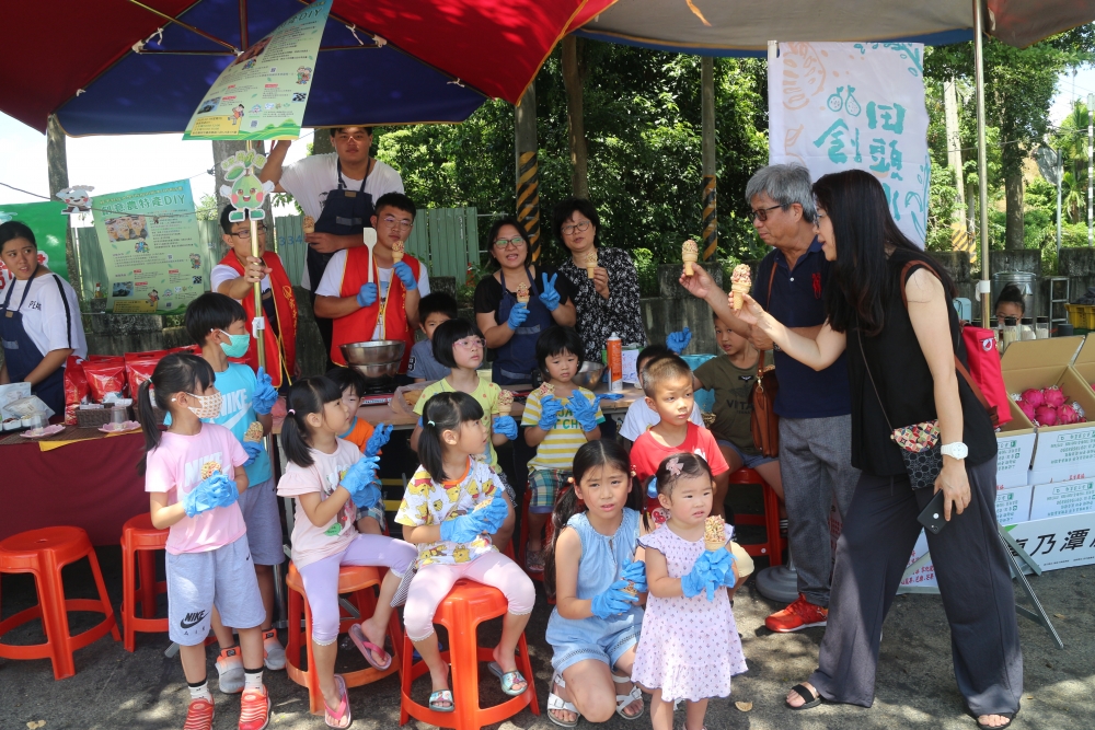 修平科大觀創學院的師生透過創新創意教學、地方創生教室、一系一社區、專業融入服務學習等方式,從聆聽在地達人的演講,到實際參觀田頭水場域,再到實際參與活動(例如:田八堡市集、旅讀田中、田中馬拉松等)當中,漸漸了解田頭水的魅力。師生了解在地文化與產業後,擷取田頭水特色,為在地發揮創意,包括數位媒體設計系吳綉華老師與學生設計本計畫主視覺圖案、三種Q版娃娃;觀光系陳春容老師與學生利用二水香柚、社頭芭樂、田中米,研發出柚子酥、芭樂乾雪Q餅及果乾米香甜筒等產品。
