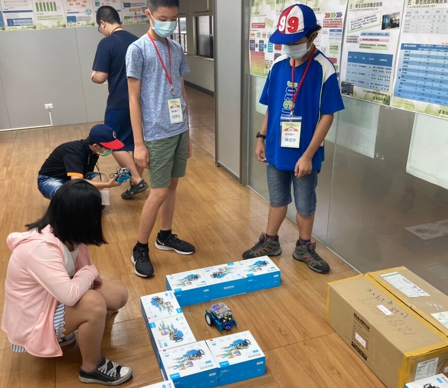分項計畫二:由資訊管理系蔡文隆老師與系上學生組成團隊,開設「機器人設計」專題課程,利用暑期至4所國中授課,擬定mBot、Matrix Mini、Lego EV3三年課程,藉由在電腦上設計程式,控制裝載馬達和各式感應器的機器人,讓同學從中體會軟體程式設計,並控制機器人完成任務目標。
